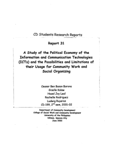 Report 31: A Study of the Political Economy of the Information and Communication Technologies (ICTs) and the Possibilities and Limitations of Their Usage for Community Development Work and Social Organizing