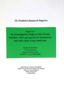 Street families have never been neither popular nor familiar to the masses. Street children are the usual ones seen in Metro Manila. It is by the fact that several studies dealt...