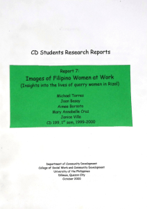 Project Leader: Evelina A. Pangalangan Study Leaders: Editha V. Maslang; Josefina M. Rolle (UPSARD-ISWCD-NCRFW Project)
