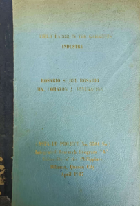Project Drector: Sylvia H. Guerrero; Research Assistants: Celeste De Castro; Karina Q. Mallonga; Ma. Carmela P. Patron (UPSARDF)
