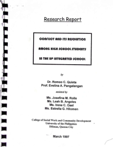 Project Leader: Evelina A. Pangalangan Study Leaders: Editha V. Maslang; Josefina M. Rolle (UPSARD-ISWCD-NCRFW Project)