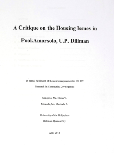 Project Leader: Evelina A. Pangalangan Study Leaders: Editha V. Maslang; Josefina M. Rolle (UPSARD-ISWCD-NCRFW Project)